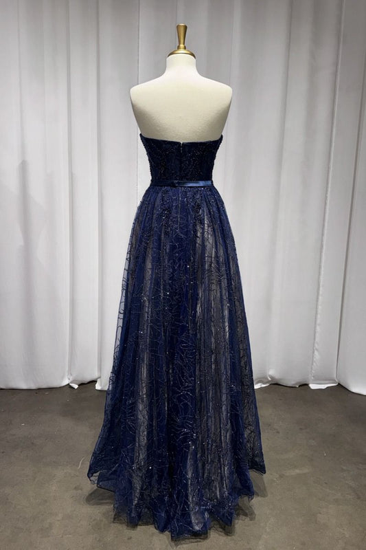 أُوكَازيُونStrapless Navy Lace A-Line Dress