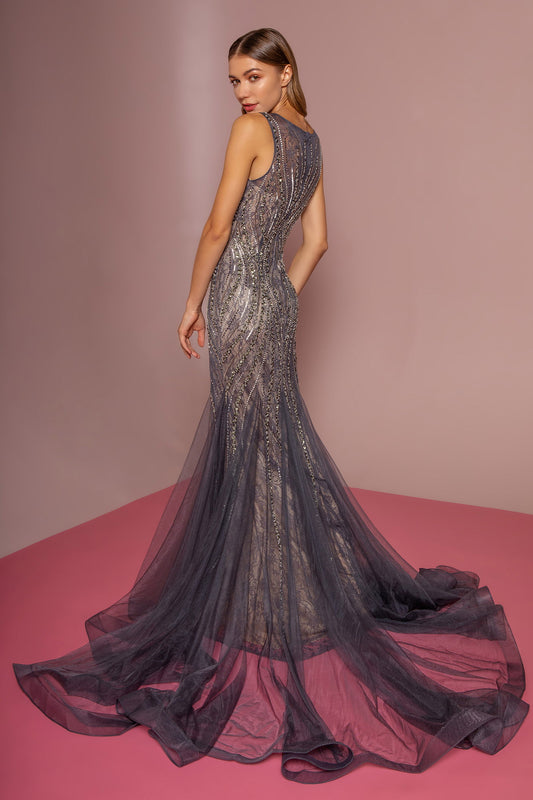 أُوكَازيُونفستان طويل مزين بالدانتيل مع ذيل
