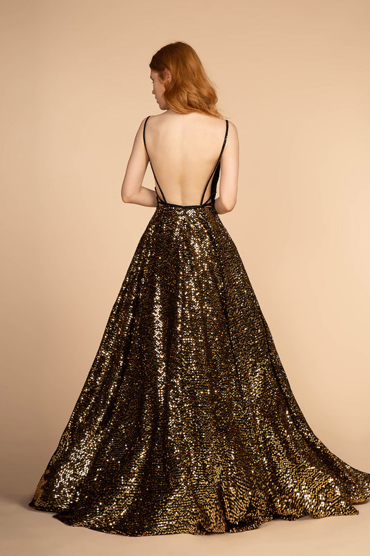 Glitter Embellished Mesh V-Neck Long Dress w/ Detachable Cape - Mask Not Included
