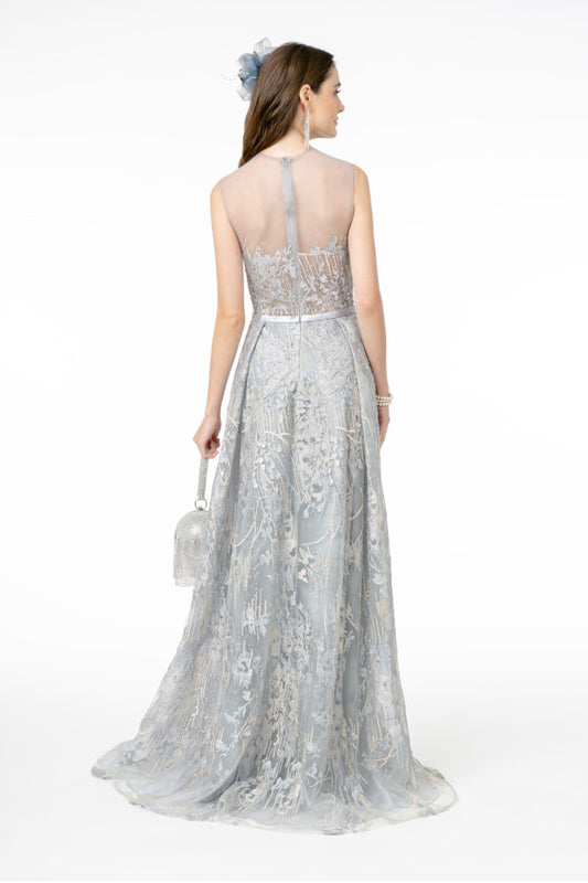 فستان طويل شبكي مطرز على شكل حرف A مع ظهر شفاف