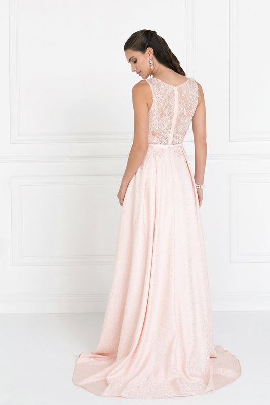 Beads Embellished Illusion Sweethearted Jersey Long Dress