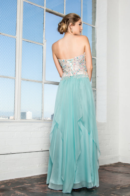 Strapless Sweetheart Chiffon Long Dress with Jewel Embellished Bodice