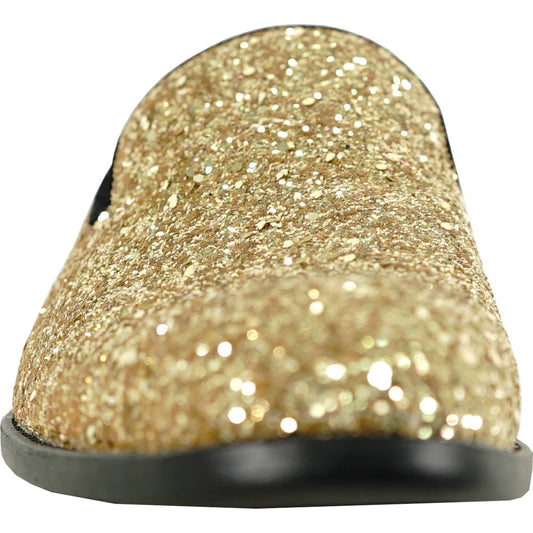 حذاء برافو الرجالي الرسمي PROM-8 حذاء لوفر للحفلات الراقصة وحفلات الزفاف باللون الذهبي