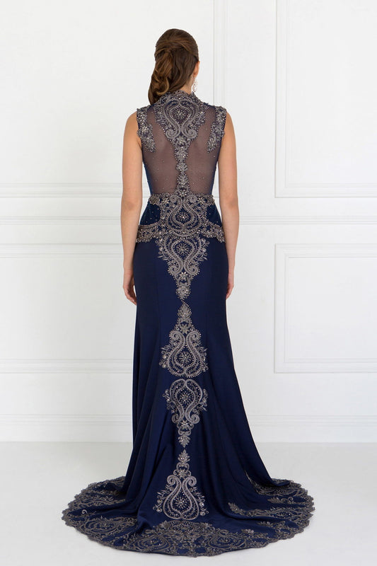 Rome Jersey Mermaid Long Dress with Embroidery and Jewels