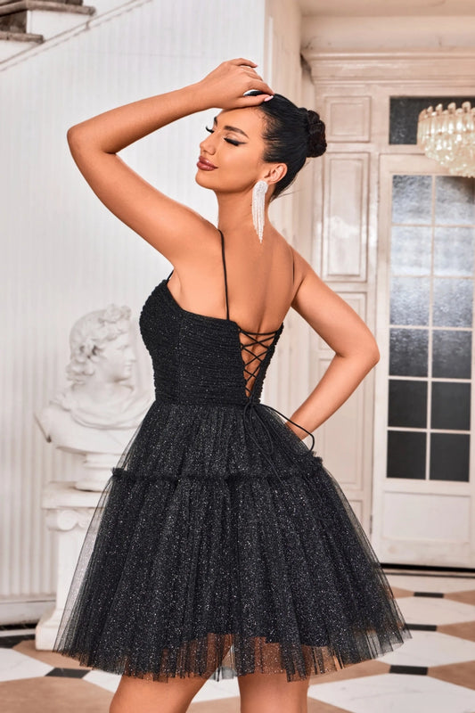 Sweethearted Glitter Mesh Homecoming Dress w/ Corset Back