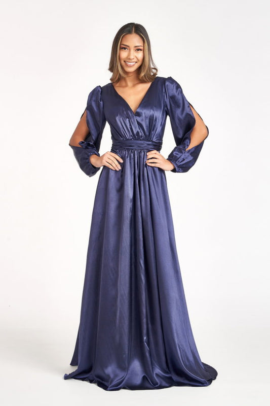 Sweetheart Neckline Satin Long Dress w/ Slit
