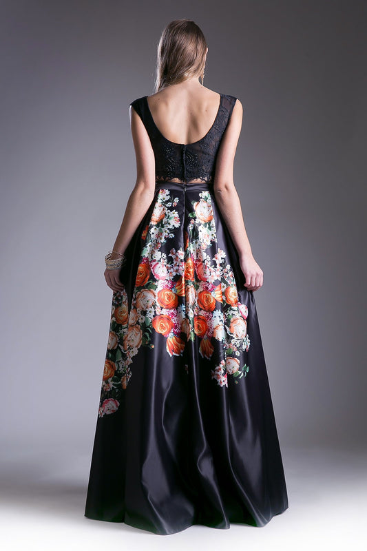 Beaded Lace 2 Piece Floral Satin Ball Gown