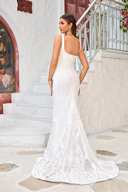 Cut-Out Back Embroidered Mesh Mermaid Wedding Gown