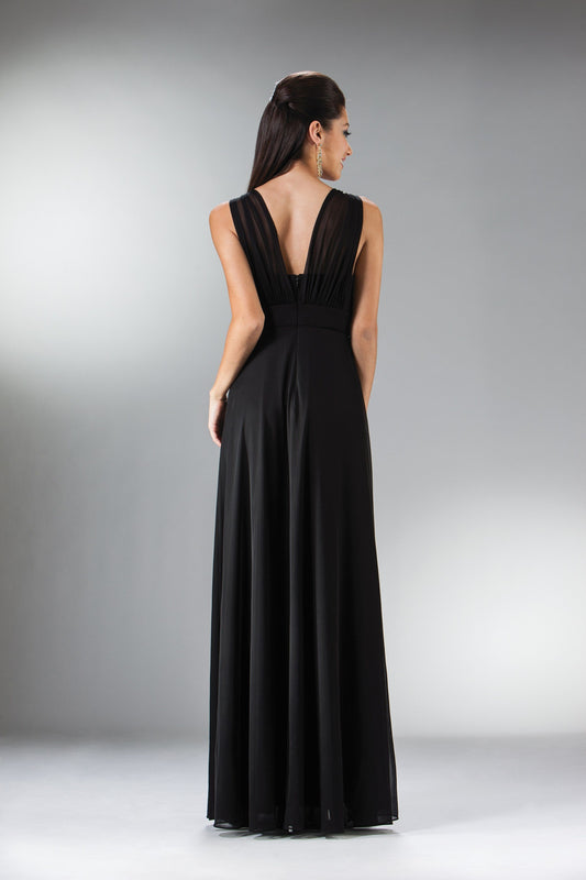 Fitted Stretch Jersey Gown with Halter Neckline and Cut Outs