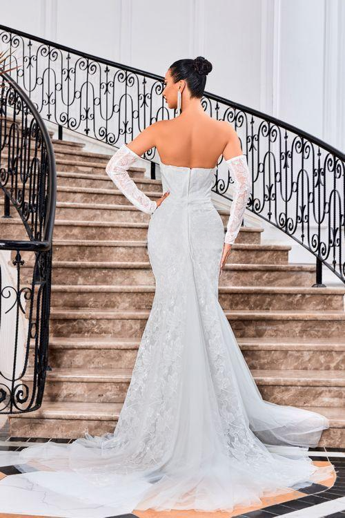 Our wedding dresses embody the timeless and the trendy together, with gorgeous details and exceptional quality your shoppers will love. Here in our bridal dress collection, you will find elaborate floral dresses, strapless wedding dresses, long-sleeve and off-the-shoulder pieces, mermaid wedding dresses, and corset-style pieces. With an array of unique designs to accommodate diverse preferences, our selection redefines wedding couture, with bridal gowns that are effortlessly romantic and elegant.