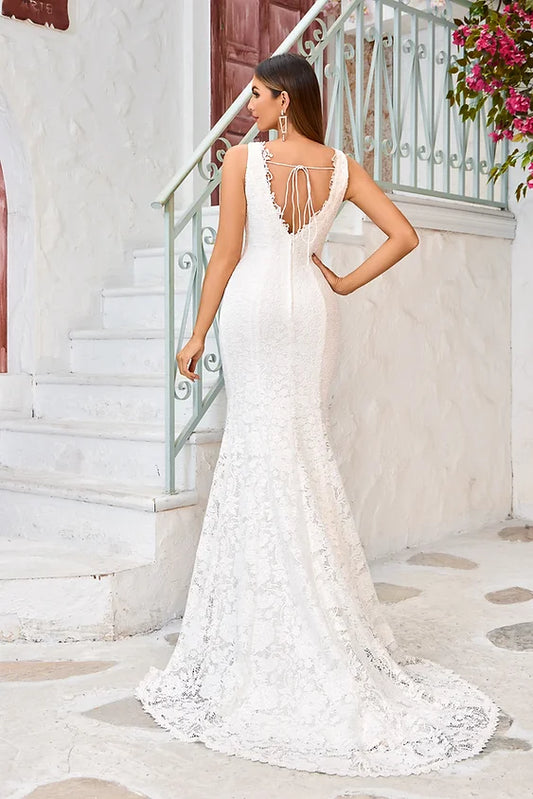 Lace Illusion Sweetheart Mermaid Long Dress with Sheer Back
