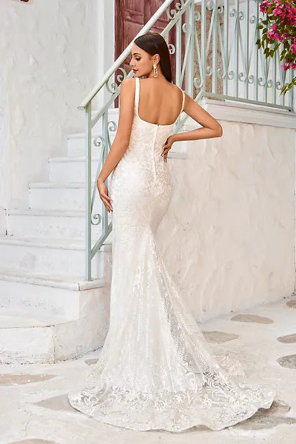 Sweetheart Embroidered Mermaid Wedding Gown w/ Open Back Laced Up