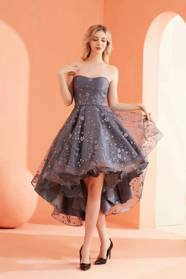 Embrace elegance in our J22079 Steel Blue Ducktail dress. With a tea length, strapless design, and A-Line silhouette, this dress exudes sophistication and style. Perfect for any special occasion or event, it's sure to turn heads and make you feel like a true damas.