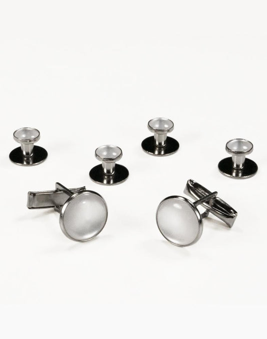 White Mother of Pearl in Gold or Silver Setting Studs & Cufflinks Set