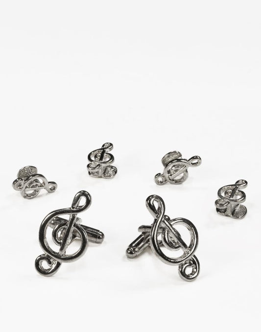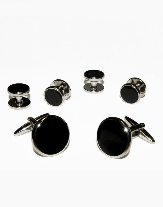 Basic Black with Silver Trim Studs and Cufflinks Set