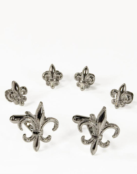 Fleur de Lis Gold or Silver Studs and Cufflinks Set