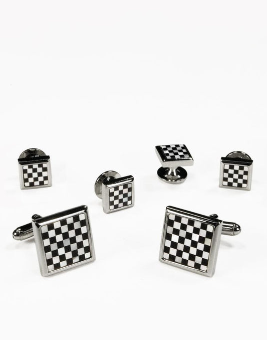 Mother of Pearl Checkerboard with Gold or Silver Trim Studs and Cufflinks Set