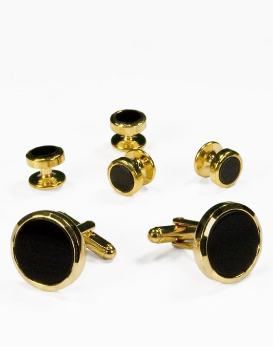 Basic Black with Gold Trim Studs and Cufflinks Set