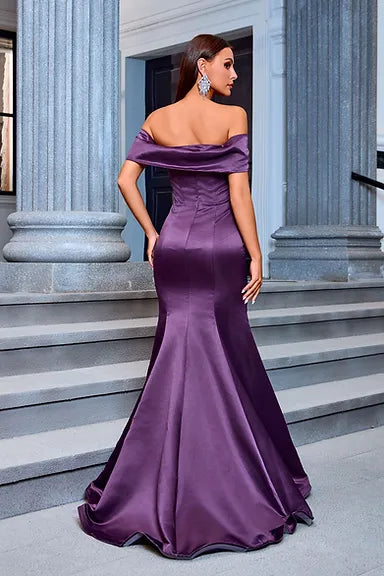 Embellished Satin Fitted Gown With Tulle Overskirt