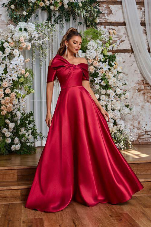 Asymmetrical Off The Shoulder A-Line Beaded Gown