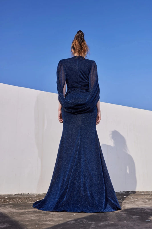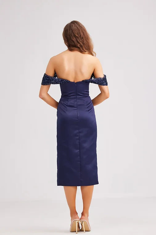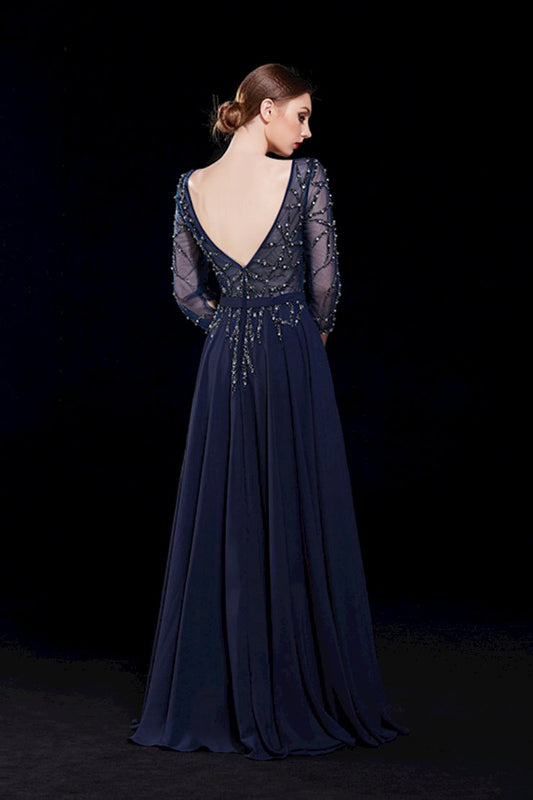 Illusion V-Neck Embroidered Mesh A-line Dress w/ Open V-Back