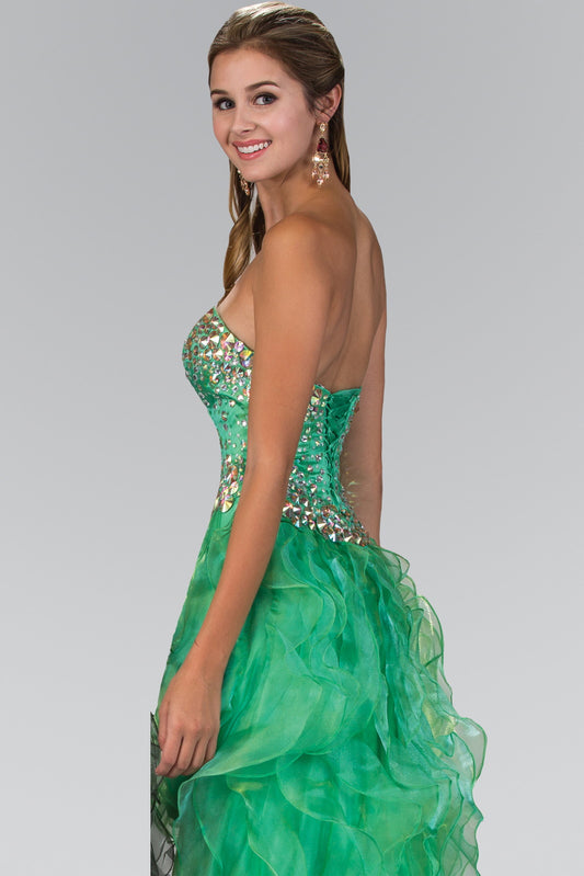 Organza High-Low Dress with Jeweled Sweetheart Bodice