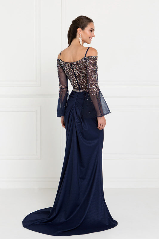Floor Length Dress with Sheer Back and Bead Embellished Bodice