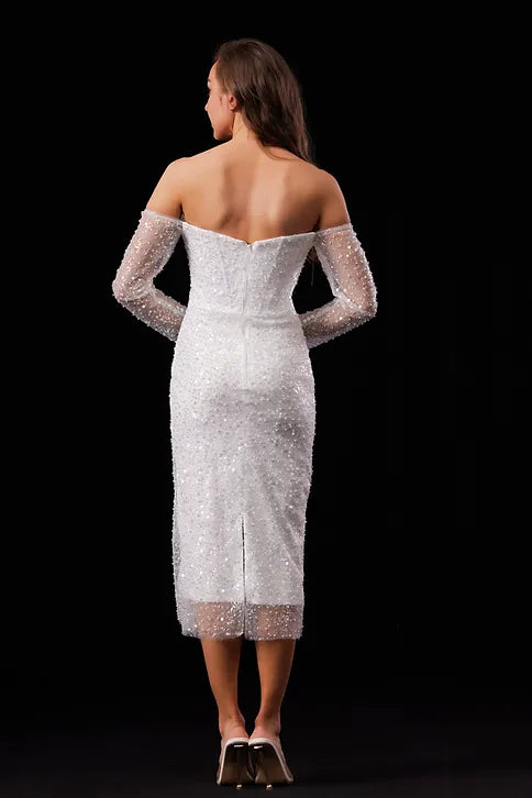 Beaded A-Line Wedding Dress With Long Sleeves