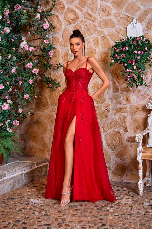 Introducing J26011 - the ultimate fusion of elegance and glamour. This ravishing wine-colored dress features a stunning lace corset, intricate beadwork, and a seductive leg slit. The deep violet and navy tones add a touch of sophistication, while the alluring back open design and v-neckline add a modern twist. Perfect for prom or any special occasion.