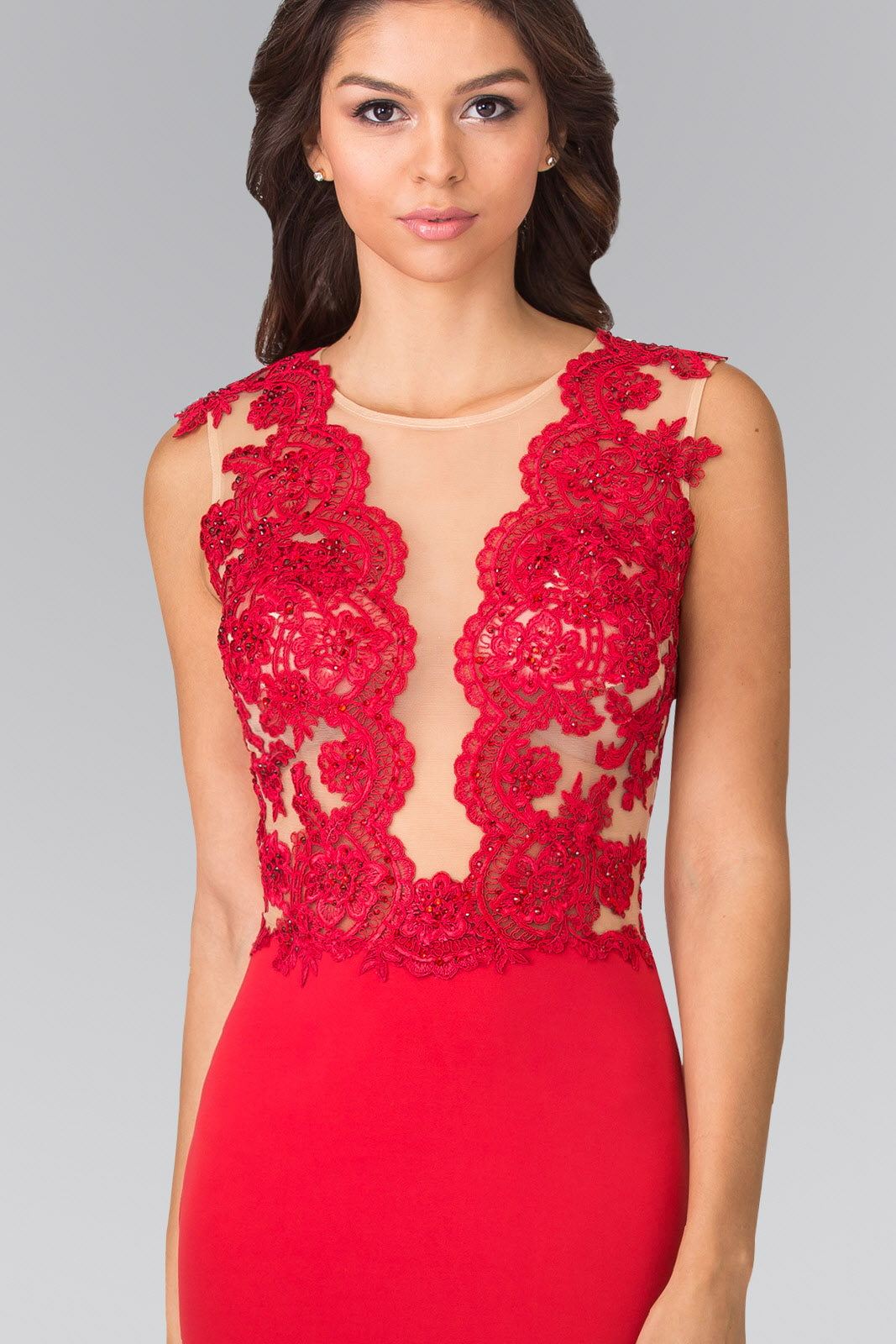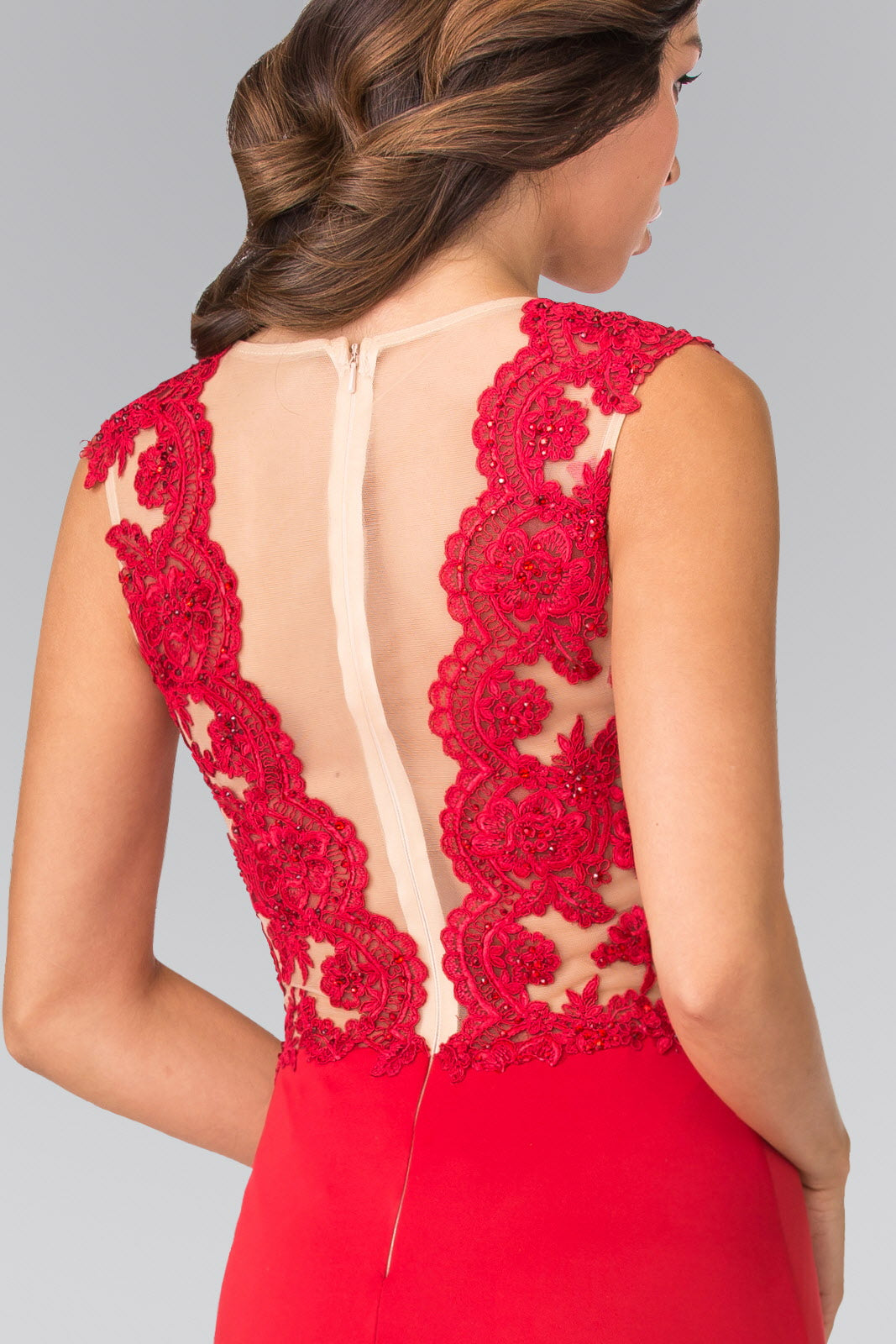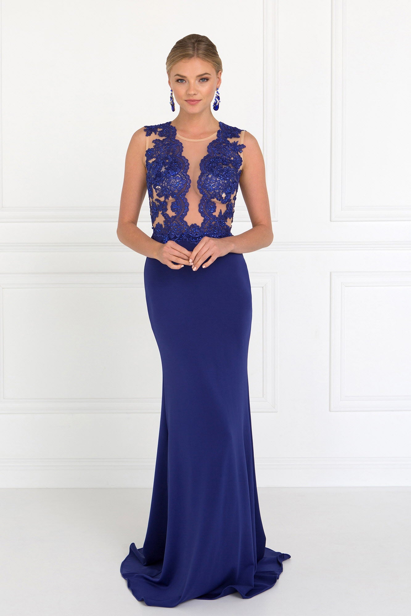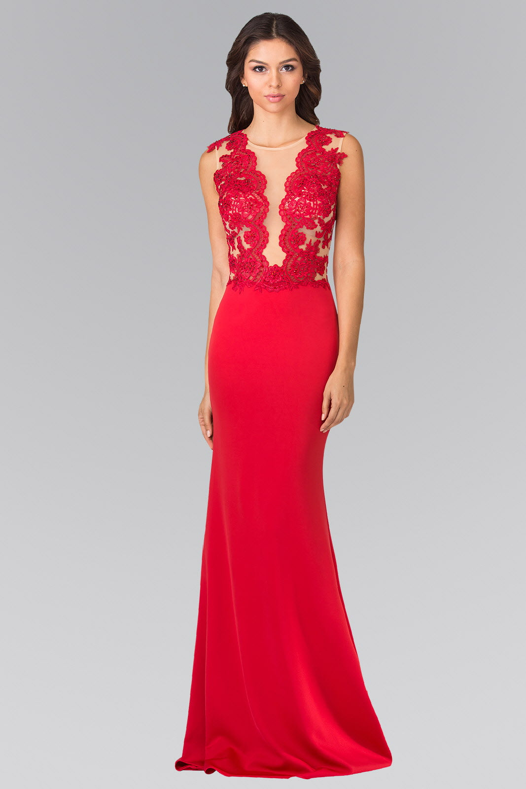 Elevate your style with our Sleeveless Lace Embellished Long Dress. Featuring a high neckline and back sheer design, this prom dress exudes sophistication and elegance. With a mermaid silhouette and intricate lace detailing embellished with beads, this dress will make you feel like royalty. Available in royal blue, red, and black.