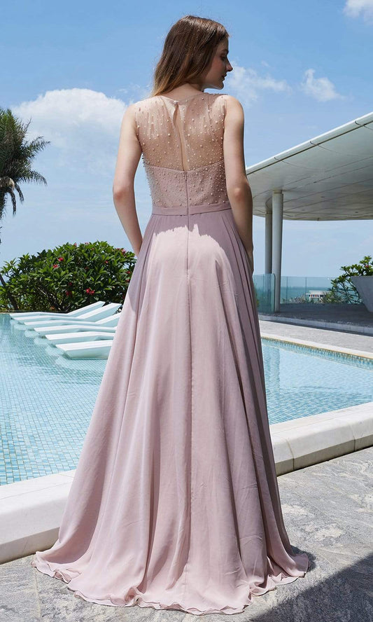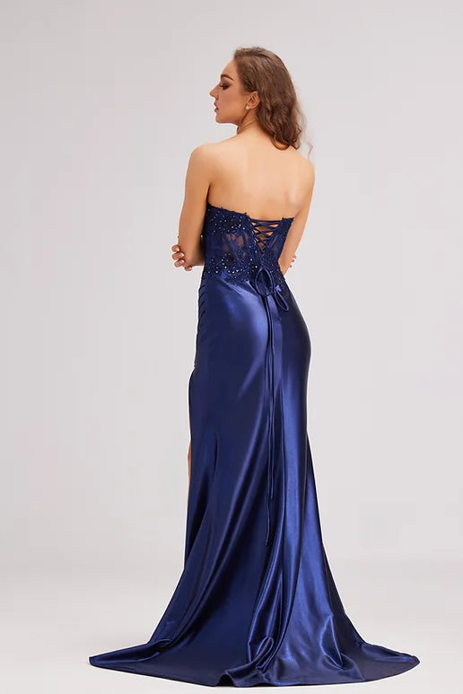 Sequin Sheer Bodice Ruffled Skirt Strapless Mesh Trumpet Long Dress