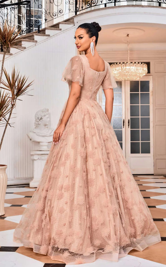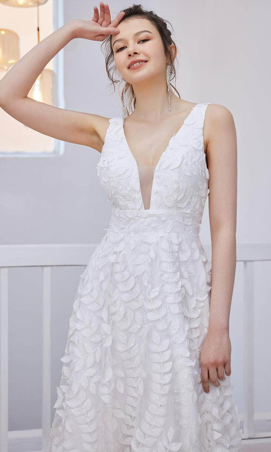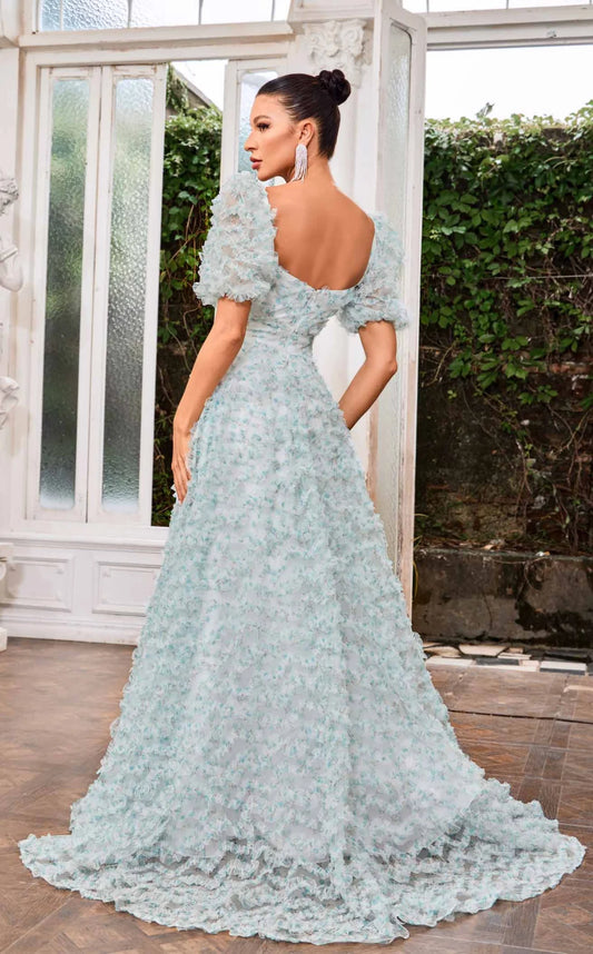 Light Blue Leaf Motif Appliqued A-Line Dress