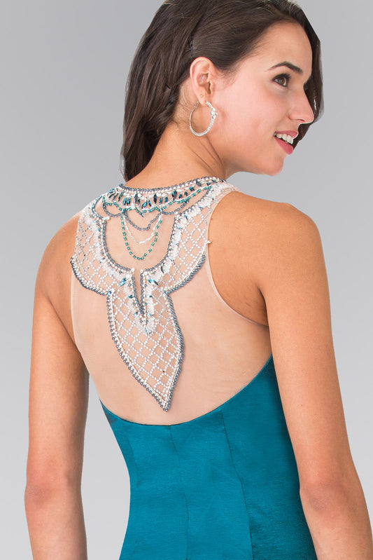 Gorgeous Long Jewel Accented Taffeta Long Dress with Two-Tier Skirt