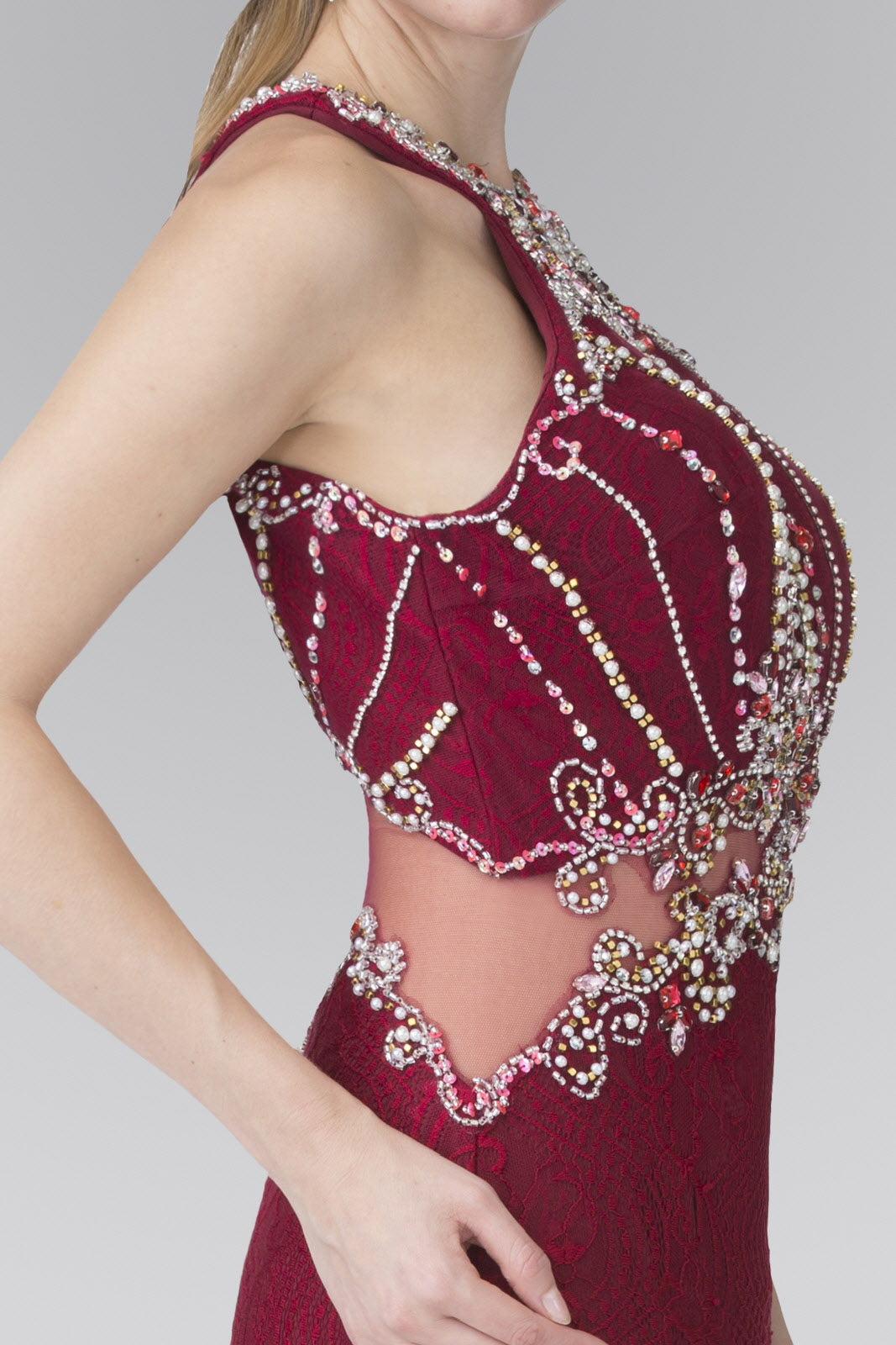 Indulge in luxury with our Halter-Neck Lace Long Dress, perfect for any elegant occasion. The intricate lace and beaded detailing, along with the illusion waistline, create a stunning silhouette. The cut-out back and jewel embellishments add a touch of sophistication. Available in royal blue or burgundy, this dress is sure to turn heads.
