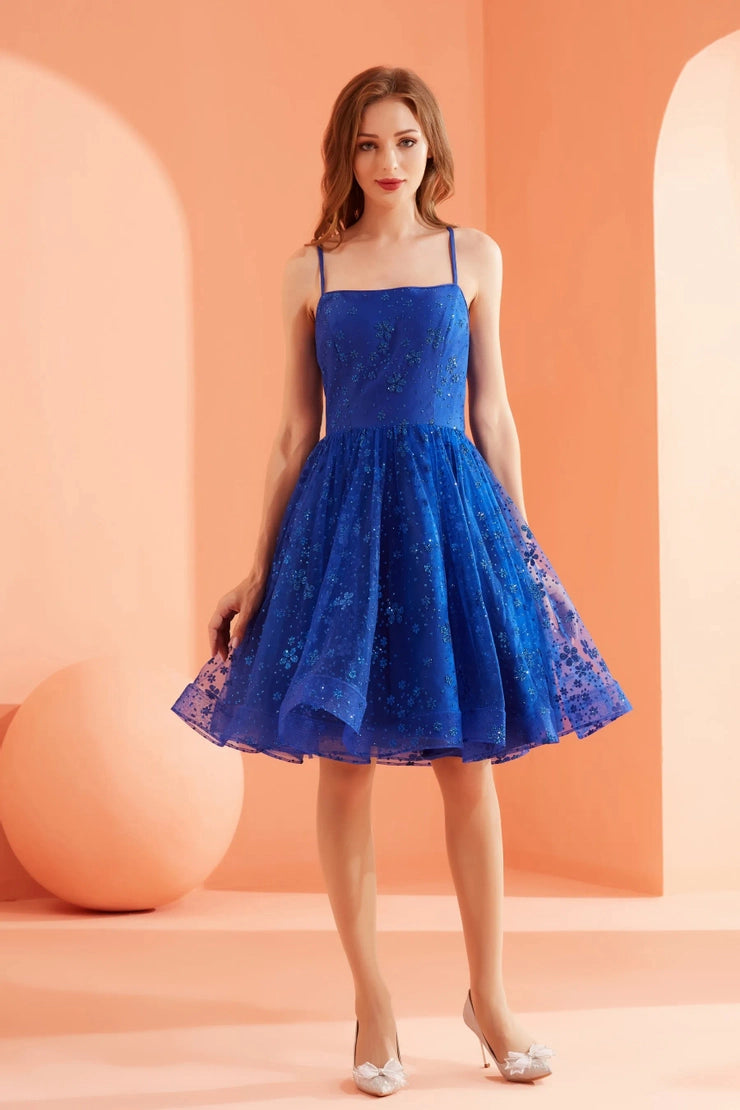 Indulge in elegance with our J22088 dress. Featuring a tea length, spaghetti straps, and A-line silhouette, this dress is perfect for an upscale event. Its royal, navy, and steel blue color options add a touch of sophistication to your ensemble. Elevate your style with this luxurious and exclusive piece.