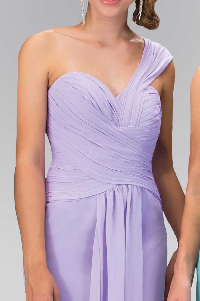 Introducing our timeless One Shoulder Ruched Long Dress with Sweetheart Neckline. Made from luxurious chiffon, this A-Line gown features a flattering sweetheart neckline and a striking one shoulder design. The back of the dress is open with delicate straps and a zipper closure, adding a touch of elegance to the navy, aqua, champagne, or lilac color options. Perfect for prom or any special occasion.