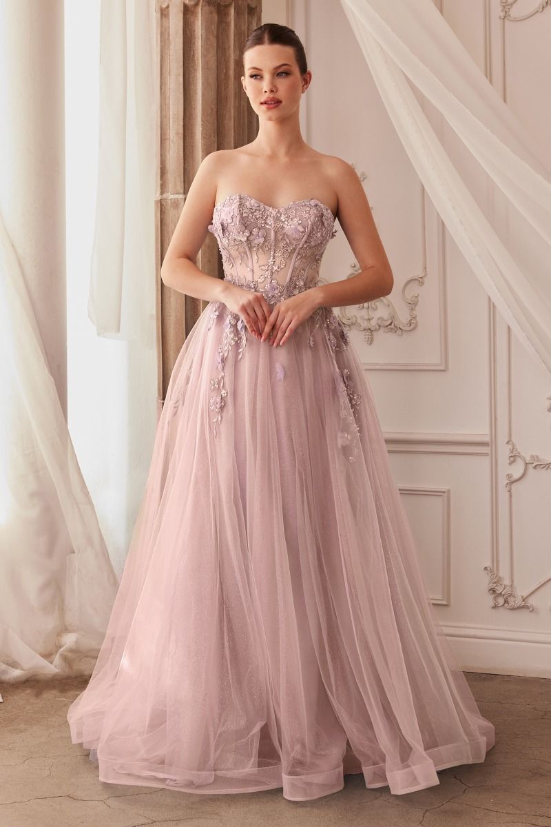 With this exquisite strapless floral ball gown, you will feel like a real-life princess! The bodice is sheer and boned, holding the dress perfectly in place - so no need to worry about the dress slipping and sliding. A beautiful floral lace applique highlights your curves adding an air of sophistication, covered in layers of soft tulle for a fairytale-like grace. But wait, there's more— how about a pair of removable puff sleeves? Just add them when you want to give your look an extra touch of character! Dare to take center stage and make your dreams come true in this showstopper.