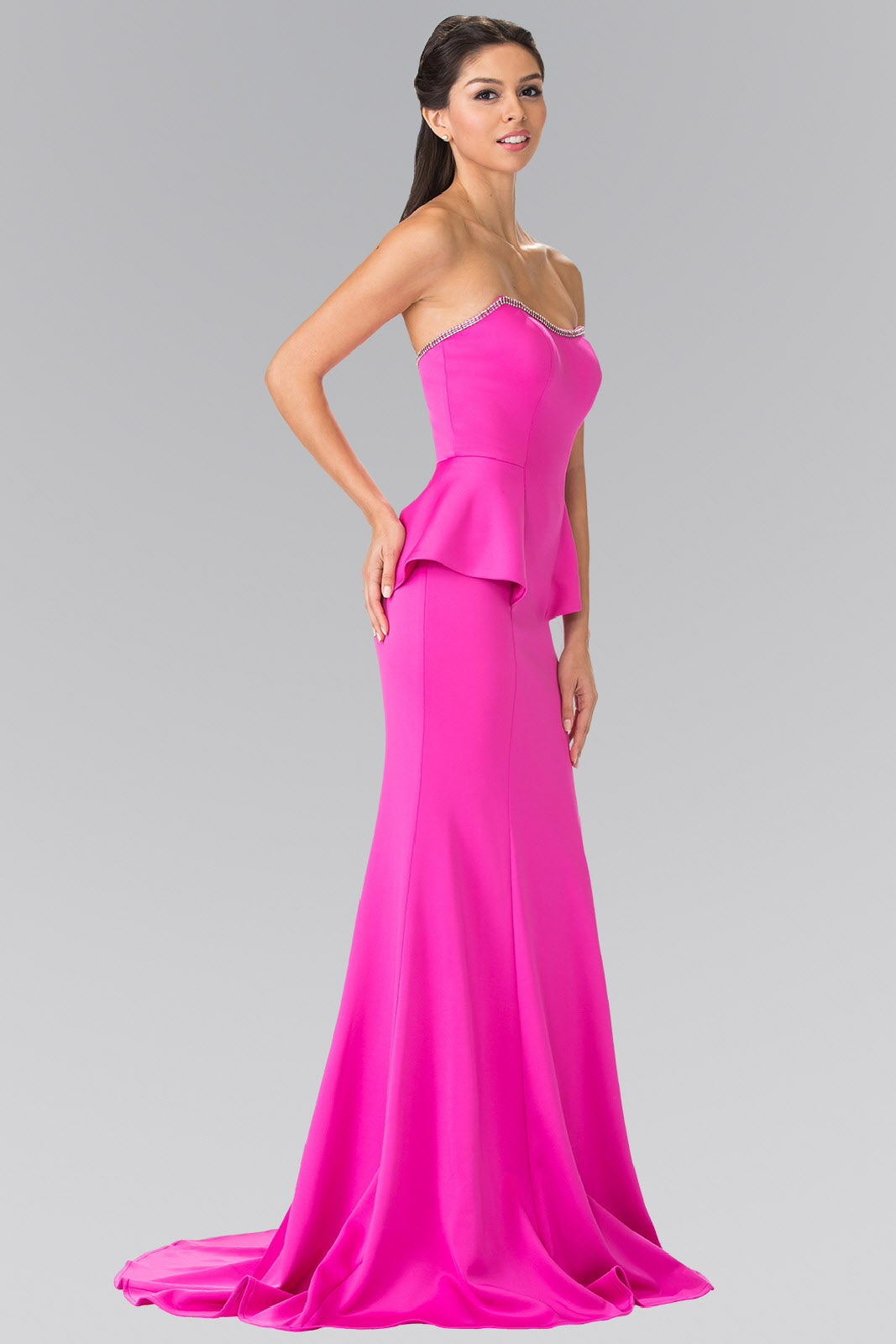 For a sophisticated and exclusive look, choose our Strapless Mermaid Long Dress. Made with luxurious Rome Jersey fabric, this dress features a jewel embellished bodice and a mermaid silhouette that will hug your curves in all the right places. The back zipper adds a touch of elegance, while the blue and fuchsia color combination will make you stand out at any prom or formal event.