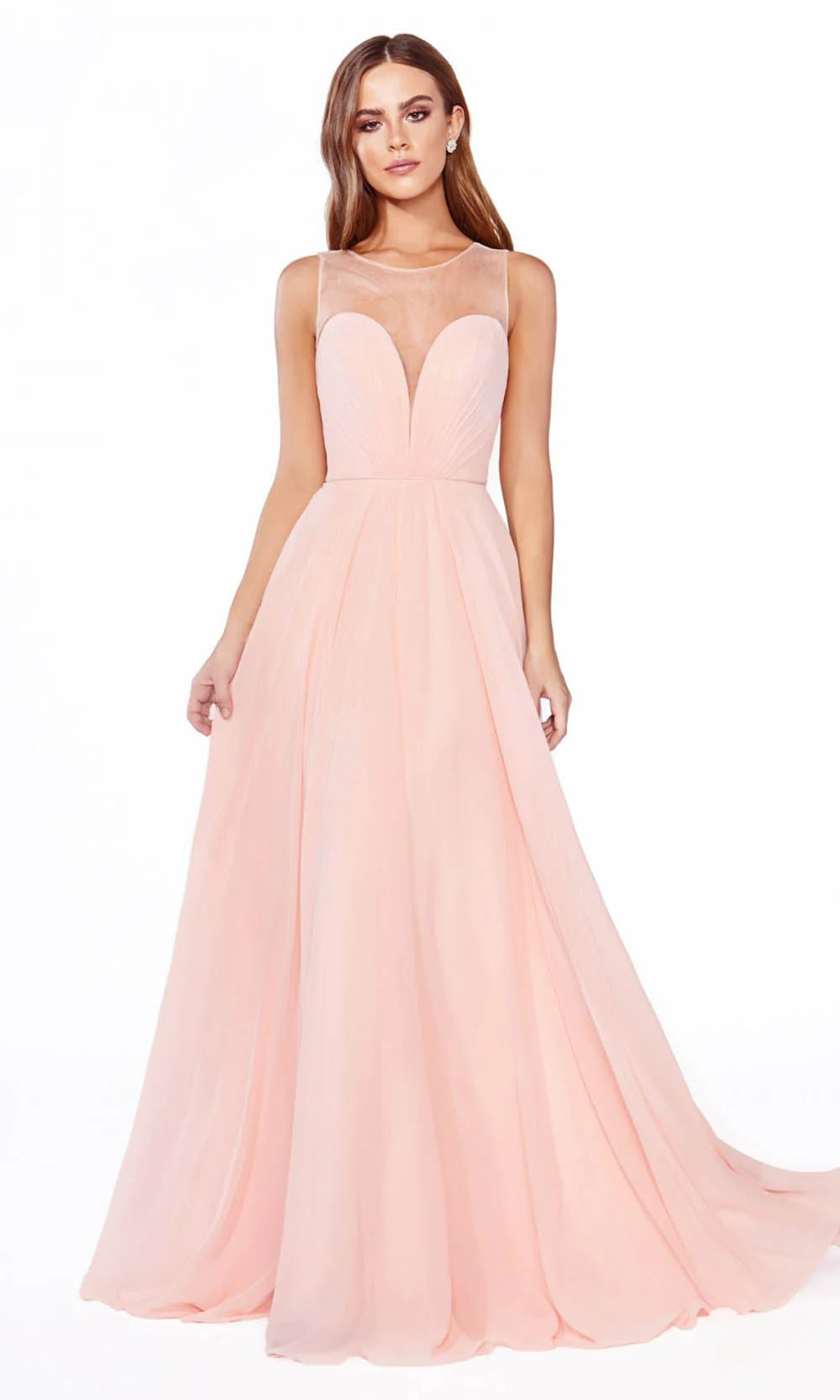 This stylish A-Line Chiffon Dress is designed with an illusion neckline and open back for a unique and modern look. Crafted with a lightweight, flowy chiffon fabric, it is sure to provide all-day comfort and one-of-a-kind style.