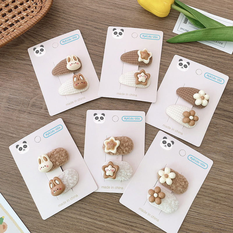 Add a touch of whimsy and fun to your hair with this charming set of hair clips featuring a cartoon rabbit, delicate florals, and a sparkling star. Made of soft fabric and plush materials, these hair accessories will add a playful touch to any outfit.
