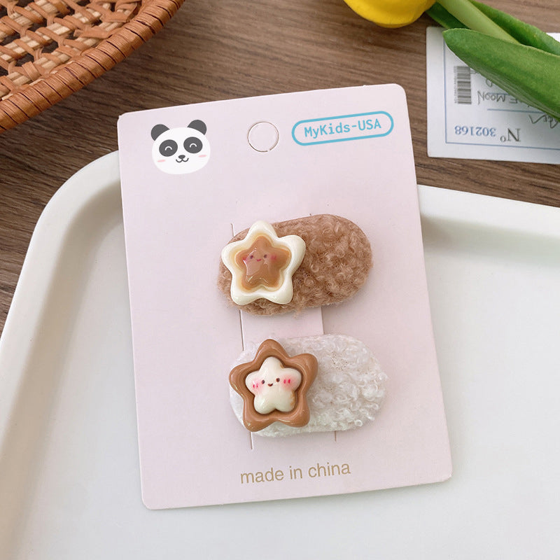 Cartoon Rabbit, Floral, And Star Hair Clip: Small Fabric And Plush Hair Accessory Set