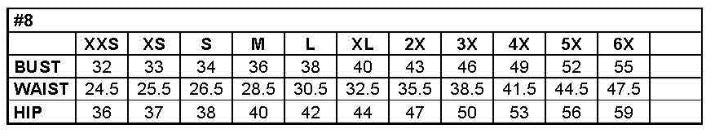 | US SIZE | XXS | XS | S | M | L | XL | 2X | 3X | 4X | 5X | 6X | |