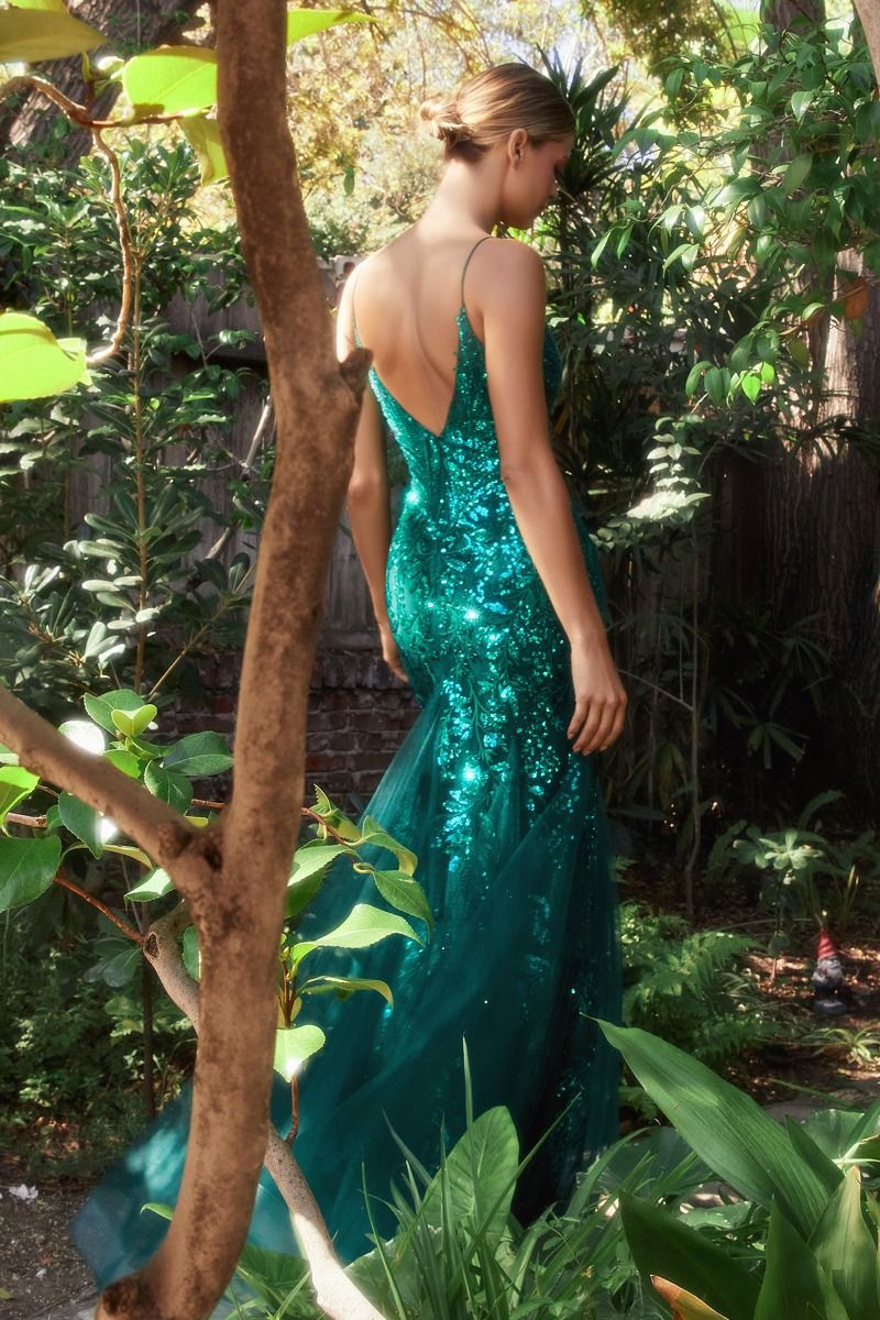 Make your grand entrance in this splendid beautiful sequin print mermaid gown. The plunging neckline and thin straps boast gorgeous floral sequin embellishment that perfectly accentuates your curves. As you move, the layered tulle godets flare from the knee for a sophisticated, regal look that will make you feel like a queen. The open scoop back adds extra elegance to the fitted silhouette – perfect for a night to remember. Whether as part of a bridal entourage or anywhere else on the royal court, this show-stopping dress is sure to make you center stage at any special occasion.