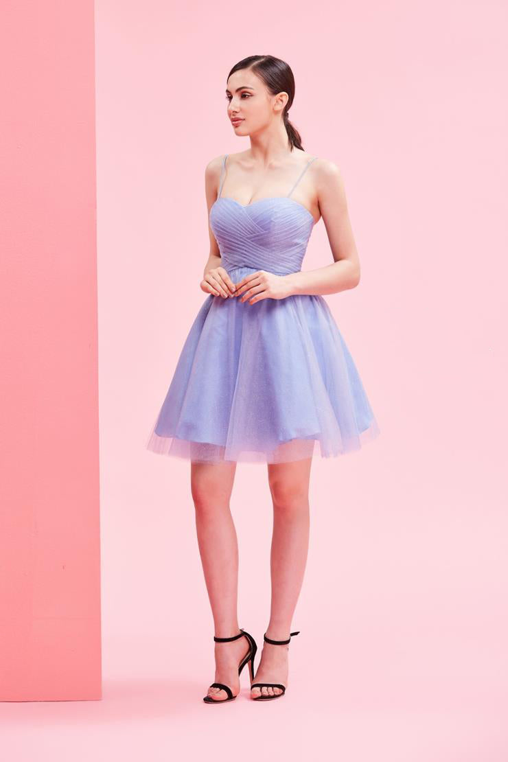 Indulge in a luxurious and exclusive experience with our J16075 dress. Its delicate tea length and spaghetti straps exude elegance, while the A-line silhouette flatters every figure. The sophisticated shades of navy and lilac add a touch of artistry to this damas/short design. Limited edition in cameo, navy, and lilac.