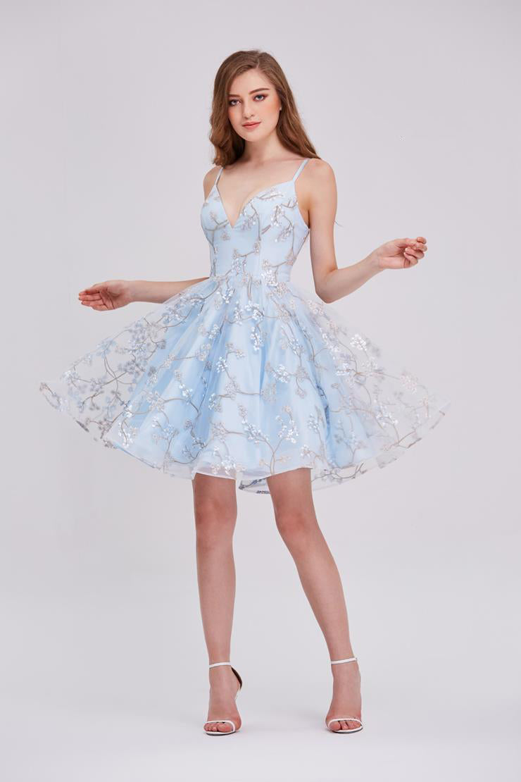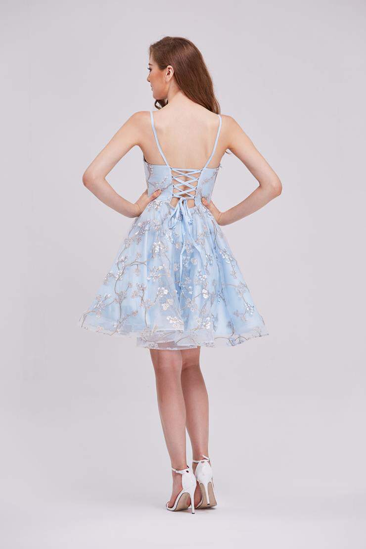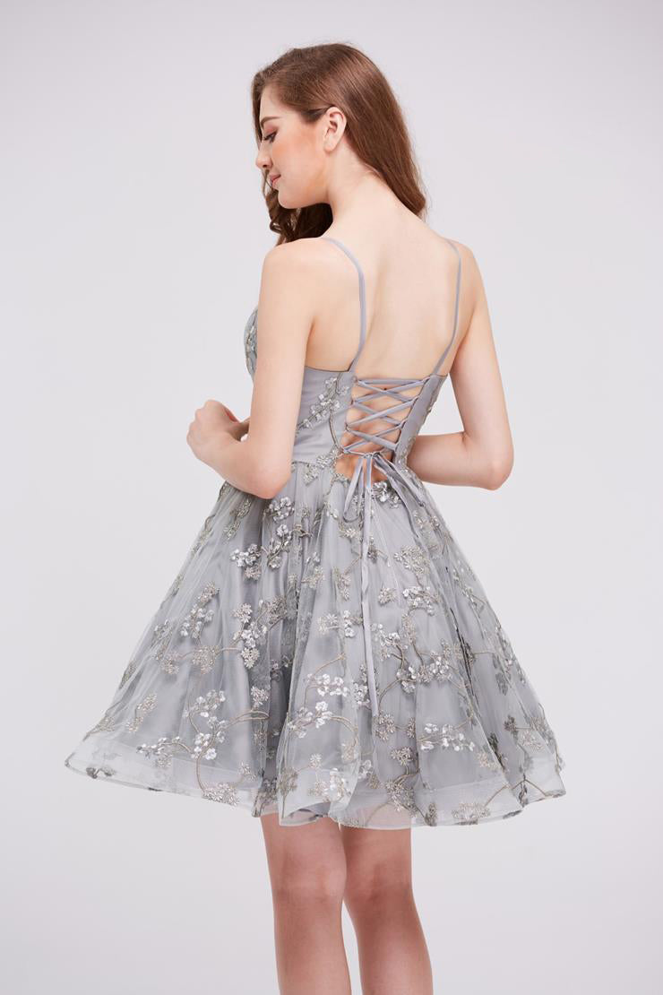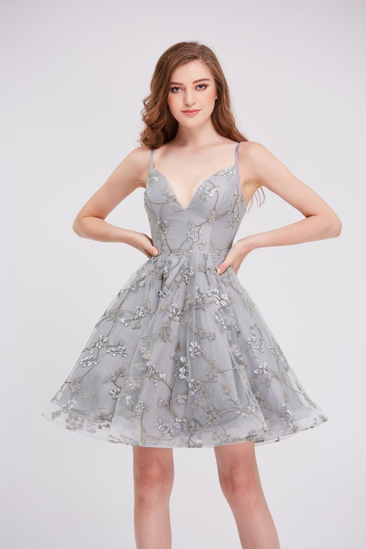 Indulge in luxury with our J16081 dress. The elegant V-neck and tea length design, paired with delicate spaghetti straps, create a sophisticated silhouette. Available in pink, grey, and blue, this A-line dress is perfect for any occasion. Don't miss out on this exclusive Damas/Short piece.