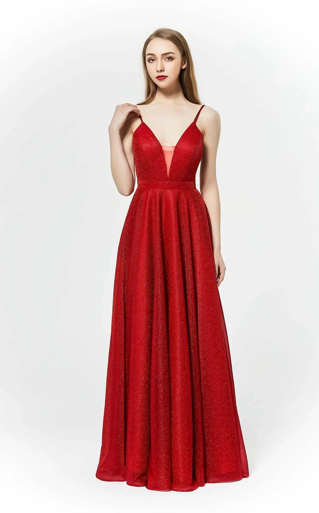 Our J19022 dress features a classic and elegant V-neckline and spaghetti straps perfect for any prom or special occasion. The midnight red color is sure to make a bold statement, while the ball gown and A-line silhouette offer a flattering and timeless look. Step out in sophistication and grace with this luxurious dress.