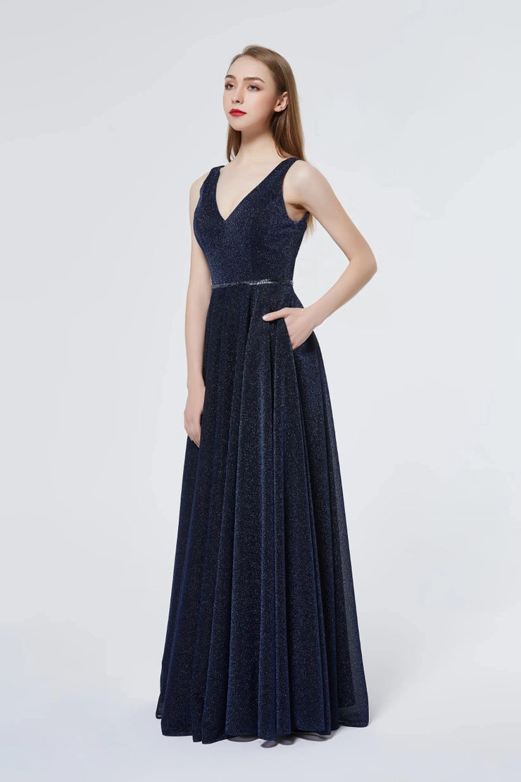 Indulge in the luxurious elegance of J19023. Crafted with a v-neckline and a flowy a-line silhouette, this stunning navy dress is perfect for any occasion. Complete with pockets, it combines both style and practicality. Sip on your favorite wine while looking effortlessly chic in this must-have dress.