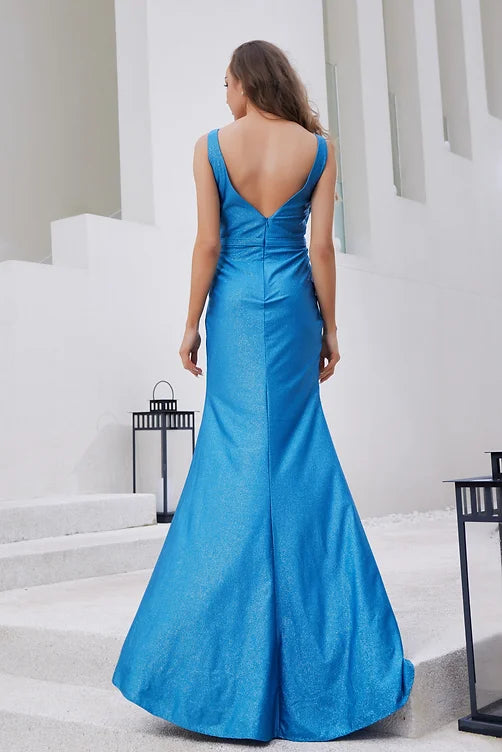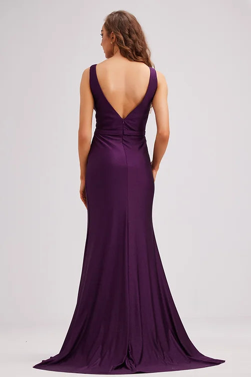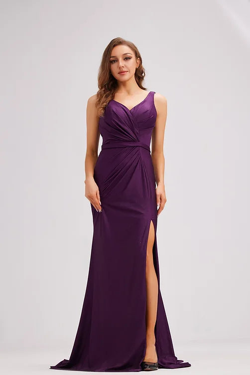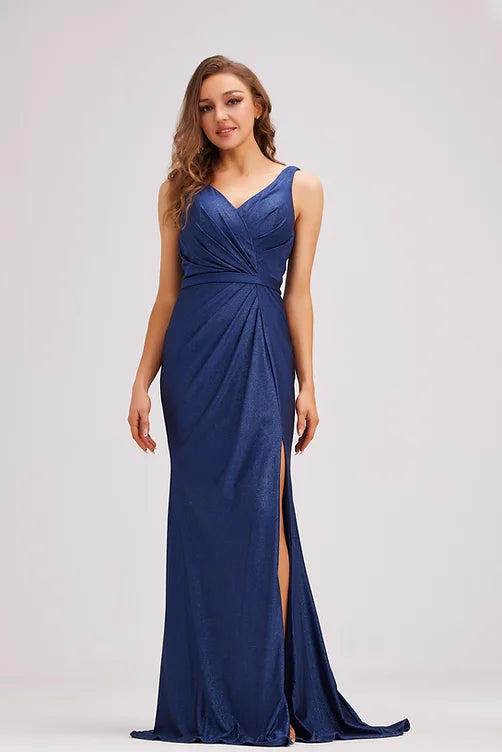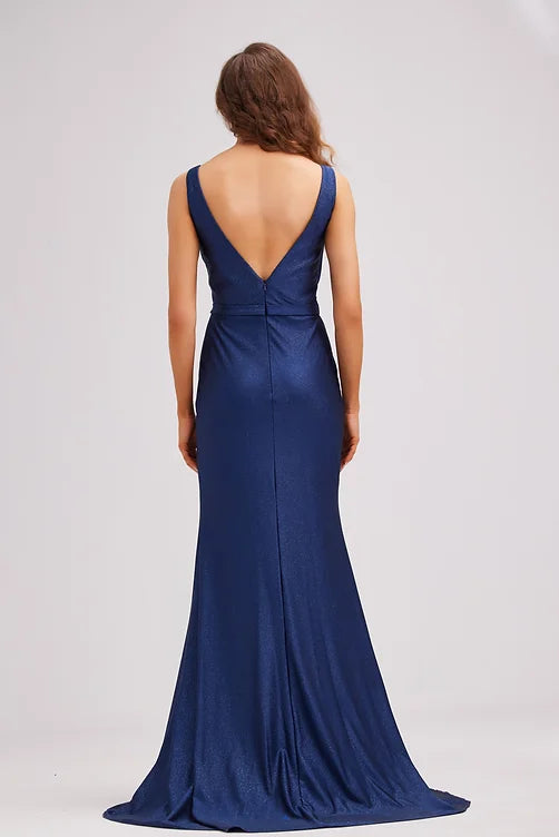 Indulge in luxurious elegance with our J23006. This exquisite v-neck dress boasts a sophisticated straight-line design, perfect for any special occasion. Available in rich berry, navy, and French blue, this dress is a must-have for those who appreciate the finer things in life.