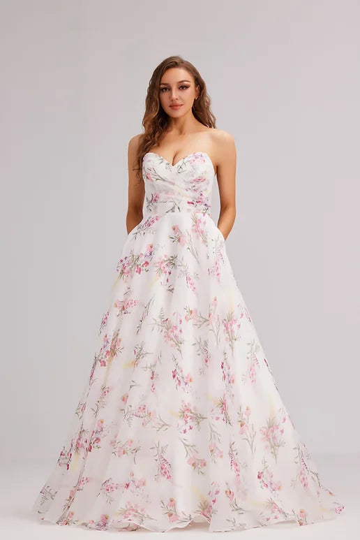 Elevate your prom ensemble with our J23023 gown. Designed with a sweetheart neckline and strapless silhouette, this luxurious ball gown features pockets for convenience and a multi-colored ivory hue for a touch of elegance. Complete your look with this A-line masterpiece.