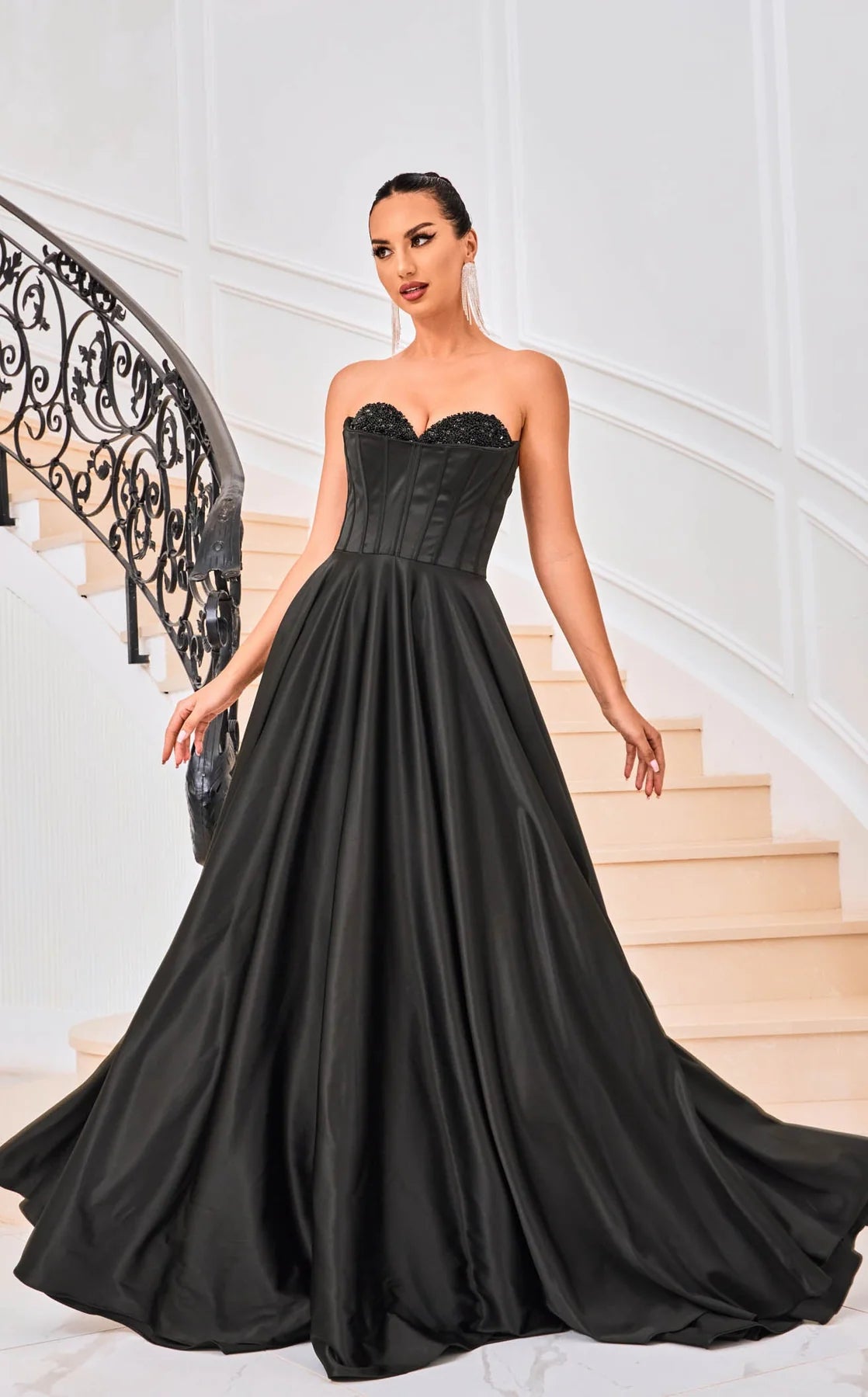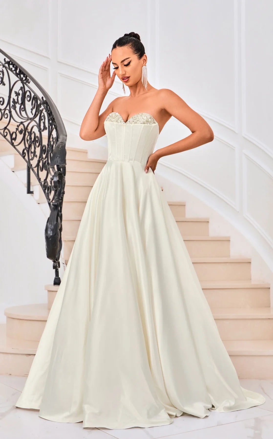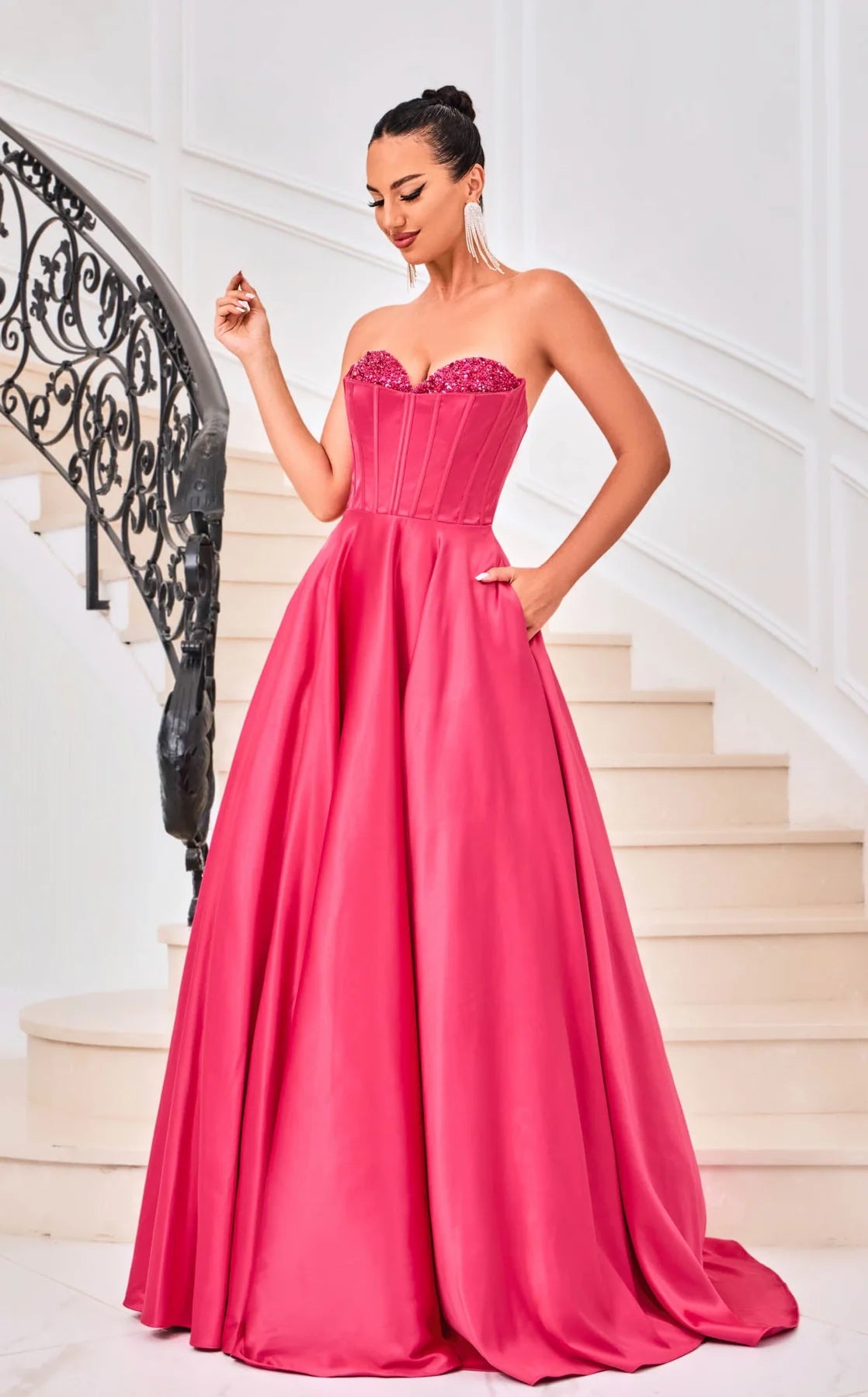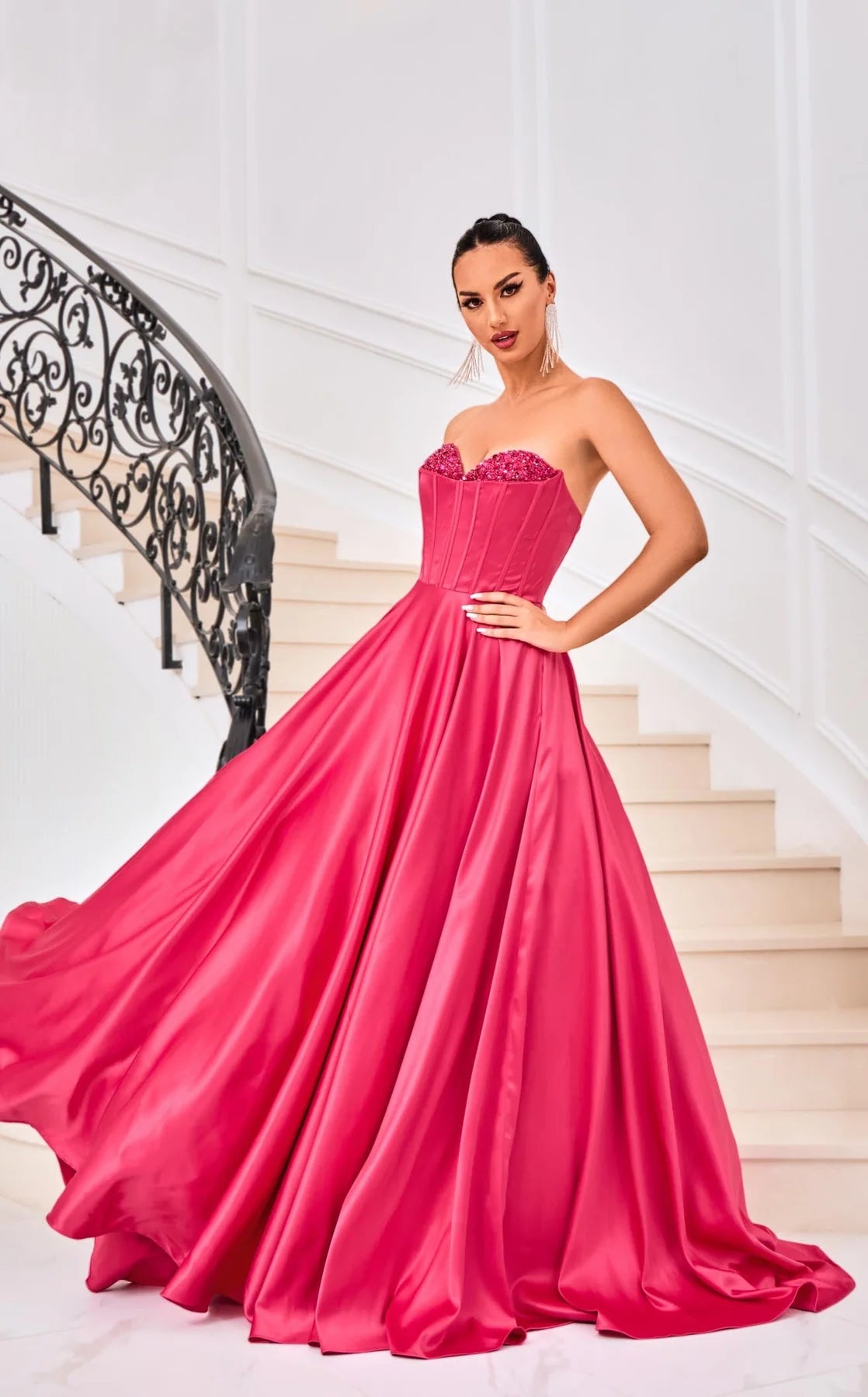 Feel like a dream in the stunning J24006 gown. This off-shoulder corset bodice complements the sequin sweetheart neckline and a tie-up back. Flowing naturally to highlight your curves, this A-line gown features a sheen pleated skirt and ends with a sweep train. Sewn to perfection from every side, this Jadore gown is ideal for special occasions. Available in Ivory, Hot Pink and Black colors